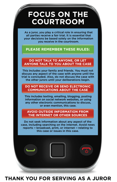 Three judges reported that a juror “friended” or attempted to friend a trial participant on Facebook. Three judges also reported that jurors used social media to post information about a deliberation. For those who get caught using social media during trial and deliberations, the punishment is generally a warning or removal from the jury. However, four judges did declare a mistrial.