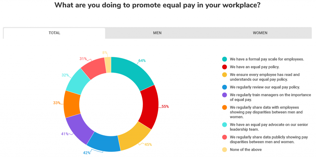 Except, the study revealed that “[d]espite the majority of respondents having an active equal pay policy, almost a quarter (23%) admitted they have never analyzed pay rates by gender—and less than third (32%) have done so in the past 12 months. Female business owners were less likely to have analyzed employee pay by gender.”