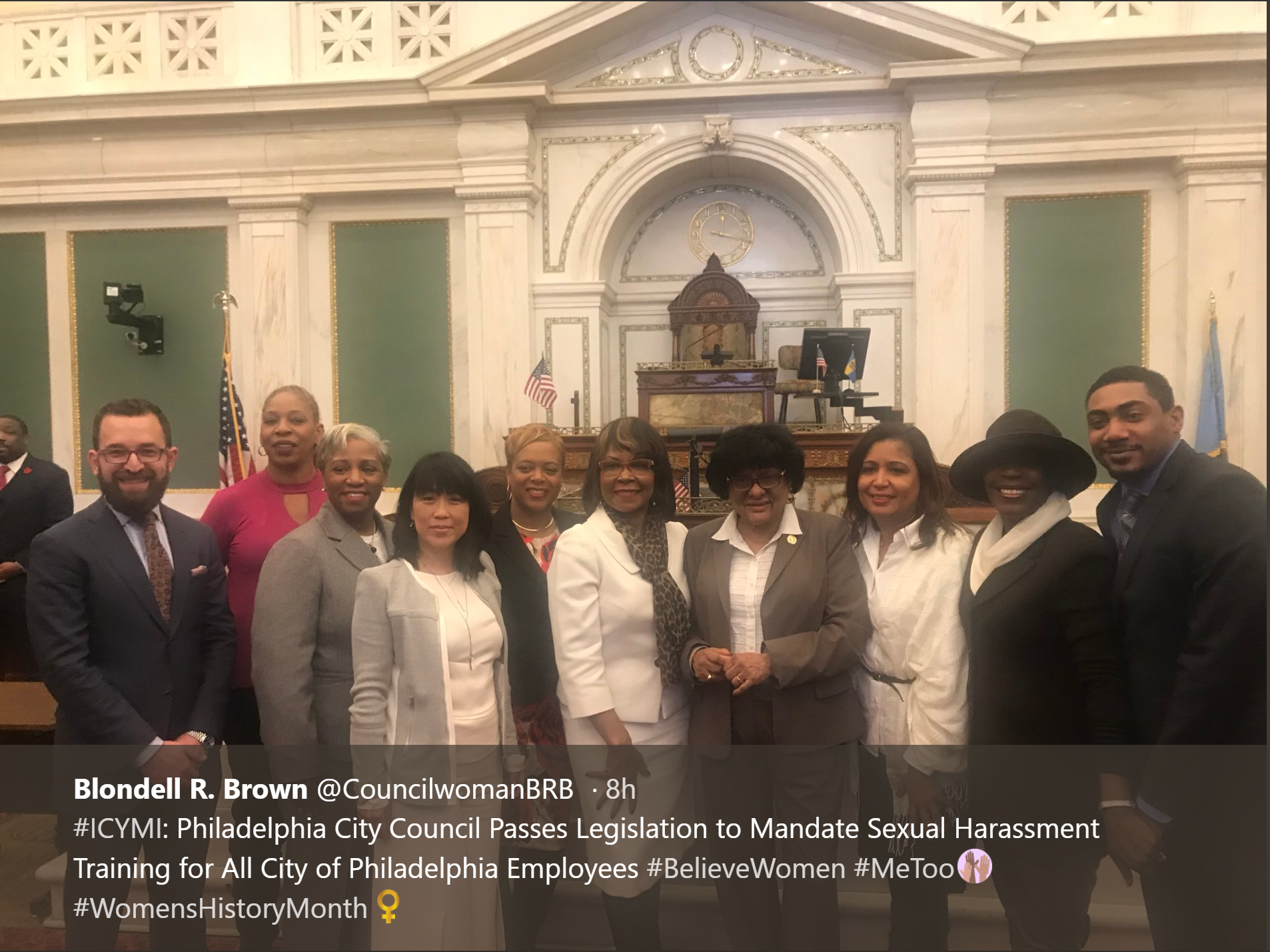 Yesterday, on International Women’s Day, Philadelphia City Council passed a bill that will require the City to provide sexual-harassment training to all of its employees and officers.