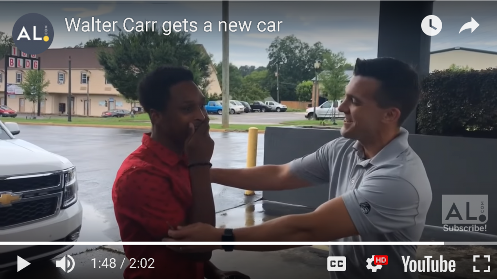 Marklin drove in from Tennessee under the guise of meeting Carr for coffee to personally thank him. That meeting ended with Marklin surprising Carr by giving Carr his own barely-driven 2014 Ford Escape.