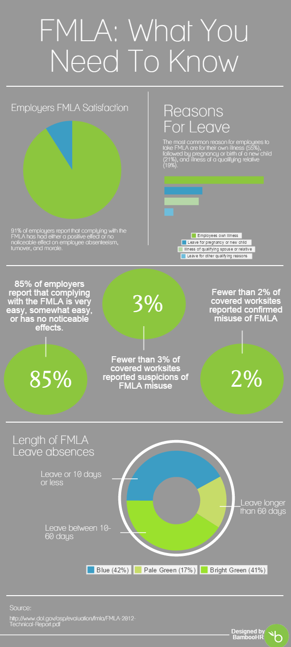 What you need to know about the FMLA (in a sweet infographic) November 21, 2014 | by Eric B. Meyer Thank you to my friends at BambooHR for passing this along: