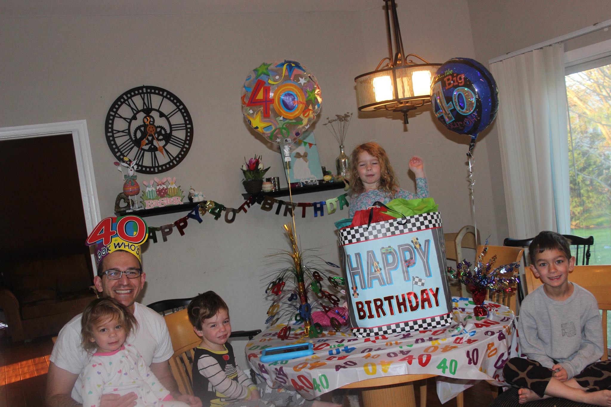 Here’s me playing cards at a Bar Mitzvah. Here are the 40 presents she got me for my 40th birthday. Here’s me taking selfies in Las Vegas. And here’s me getting to sleep on a long car ride home. (Along with everyone else, except my wife).