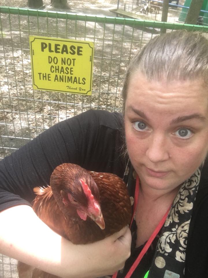 Let me introduce you to my wife, Carly. I love her. Our kids love her. Olaf loves her. Goats love her. Not sure about this rooster, though.